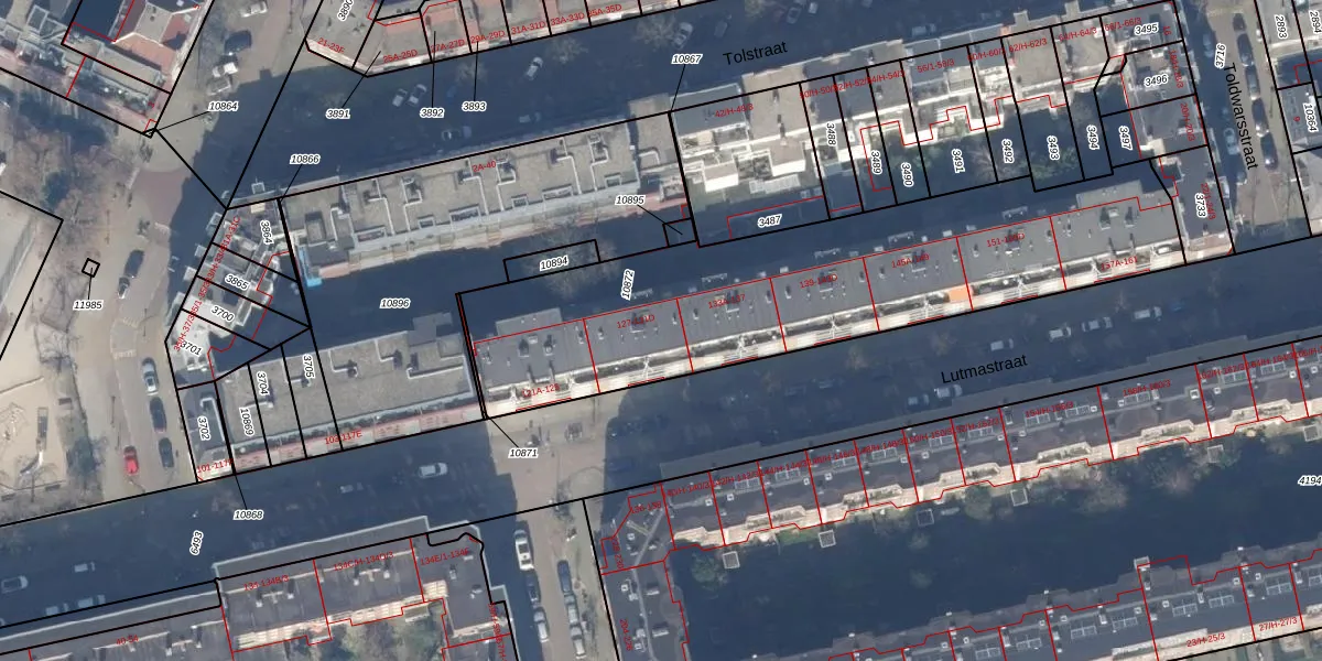 Lutmastraat 131-D is gelegen op kadastraal perceel ASD18V10872. Deze kadastrale aanduiding is uniek en wordt gebruikt door het Kadaster om eigendomsrechten en andere zakelijke rechten vast te leggen. Het perceel maakt onderdeel uit van de kadastrale gemeente Amsterdam.