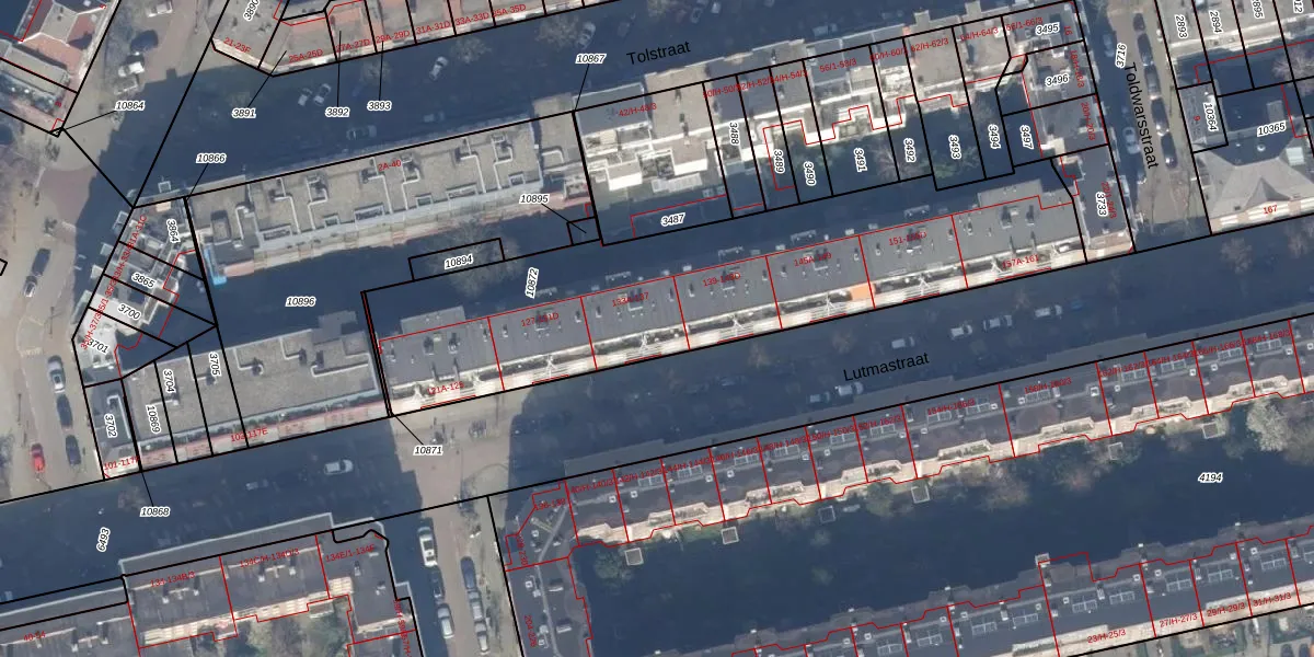Lutmastraat 137 is gelegen op kadastraal perceel ASD18V10872. Deze kadastrale aanduiding is uniek en wordt gebruikt door het Kadaster om eigendomsrechten en andere zakelijke rechten vast te leggen. Het perceel maakt onderdeel uit van de kadastrale gemeente Amsterdam.