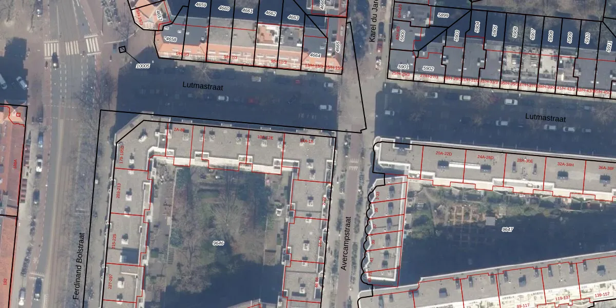 Lutmastraat 14-C is gelegen op kadastraal perceel ASD18V9646. Deze kadastrale aanduiding is uniek en wordt gebruikt door het Kadaster om eigendomsrechten en andere zakelijke rechten vast te leggen. Het perceel maakt onderdeel uit van de kadastrale gemeente Amsterdam.