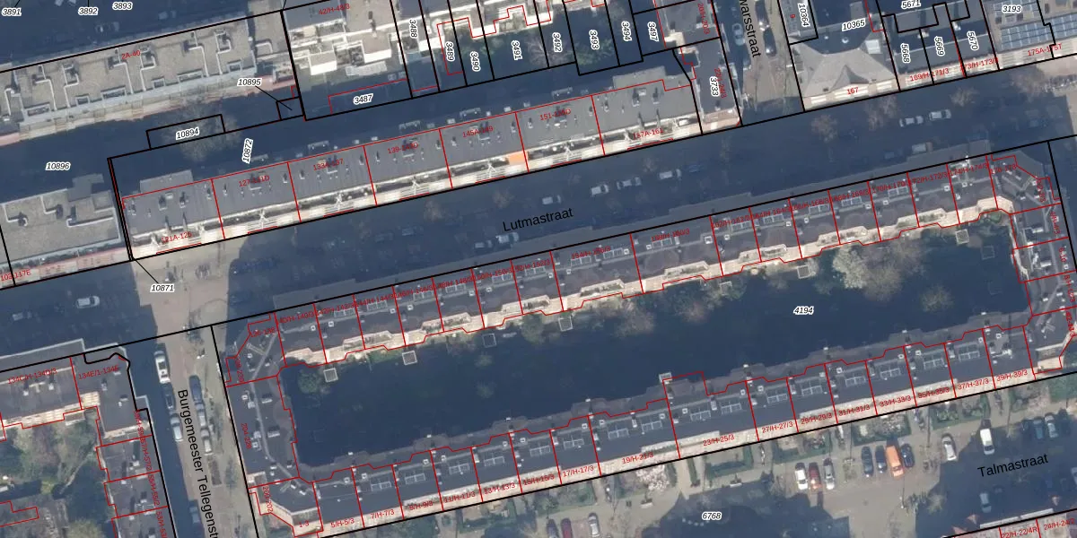 Het perceel waarop Lutmastraat 152-H staat heeft een oppervlakte van 6860 m². Dit is een zeer groot perceel. De perceeloppervlakte wordt geregistreerd door het Kadaster. Gedetailleerde informatie over de maten van dit perceel kunt u vinden in het rapport Kadastrale kaart met maatvoering van Lutmastraat 152-H.