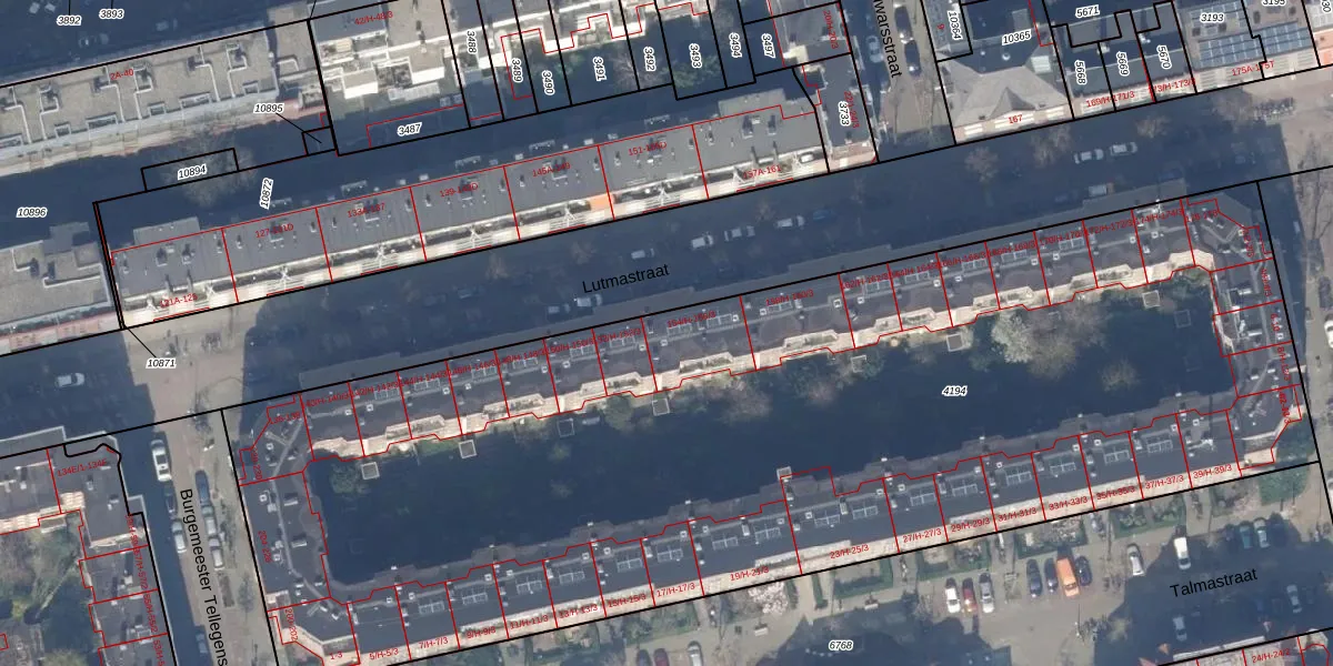 Lutmastraat 154-H is gelegen op kadastraal perceel ASD18V4194. Deze kadastrale aanduiding is uniek en wordt gebruikt door het Kadaster om eigendomsrechten en andere zakelijke rechten vast te leggen. Het perceel maakt onderdeel uit van de kadastrale gemeente Amsterdam.