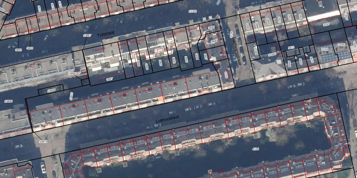 Lutmastraat 155-A is gelegen op kadastraal perceel ASD18V10872. Deze kadastrale aanduiding is uniek en wordt gebruikt door het Kadaster om eigendomsrechten en andere zakelijke rechten vast te leggen. Het perceel maakt onderdeel uit van de kadastrale gemeente Amsterdam.