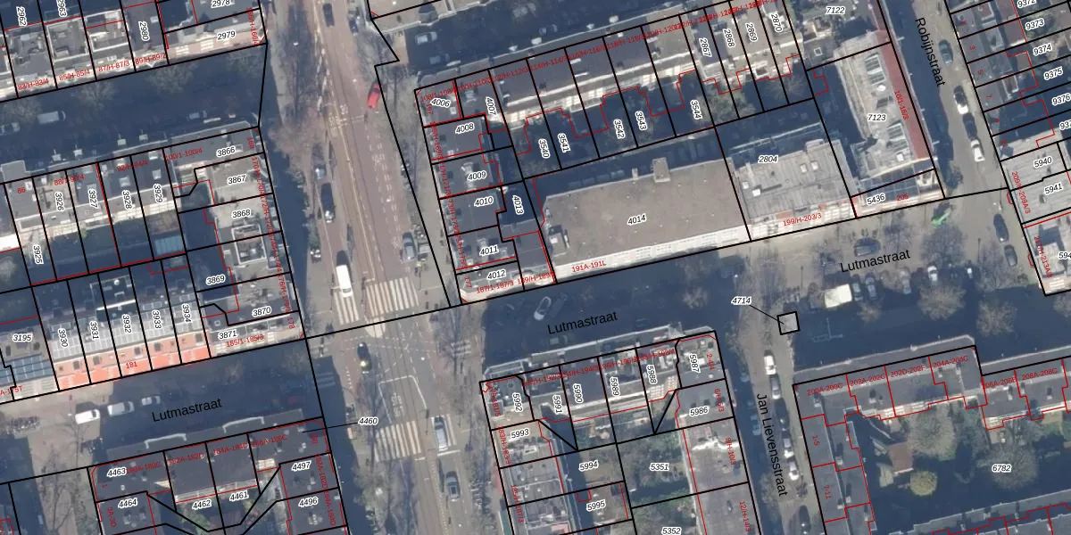 Lutmastraat 189-1 is gelegen op kadastraal perceel ASD18V4013. Deze kadastrale aanduiding is uniek en wordt gebruikt door het Kadaster om eigendomsrechten en andere zakelijke rechten vast te leggen. Het perceel maakt onderdeel uit van de kadastrale gemeente Amsterdam.