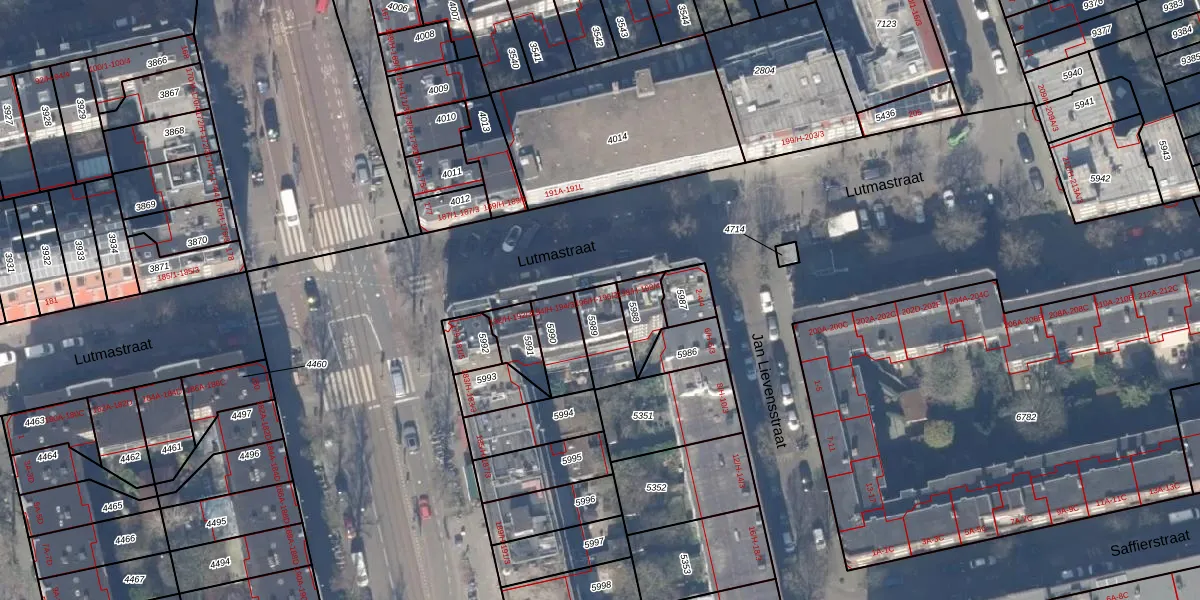 Lutmastraat 196-2 is gelegen op kadastraal perceel ASD18V5989. Deze kadastrale aanduiding is uniek en wordt gebruikt door het Kadaster om eigendomsrechten en andere zakelijke rechten vast te leggen. Het perceel maakt onderdeel uit van de kadastrale gemeente Amsterdam.
