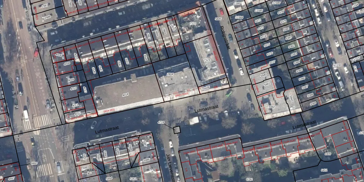 Het perceel waarop Lutmastraat 201-3 staat heeft een oppervlakte van 457 m². Dit is een groot perceel. De perceeloppervlakte wordt geregistreerd door het Kadaster. Gedetailleerde informatie over de maten van dit perceel kunt u vinden in het rapport Kadastrale kaart met maatvoering van Lutmastraat 201-3.