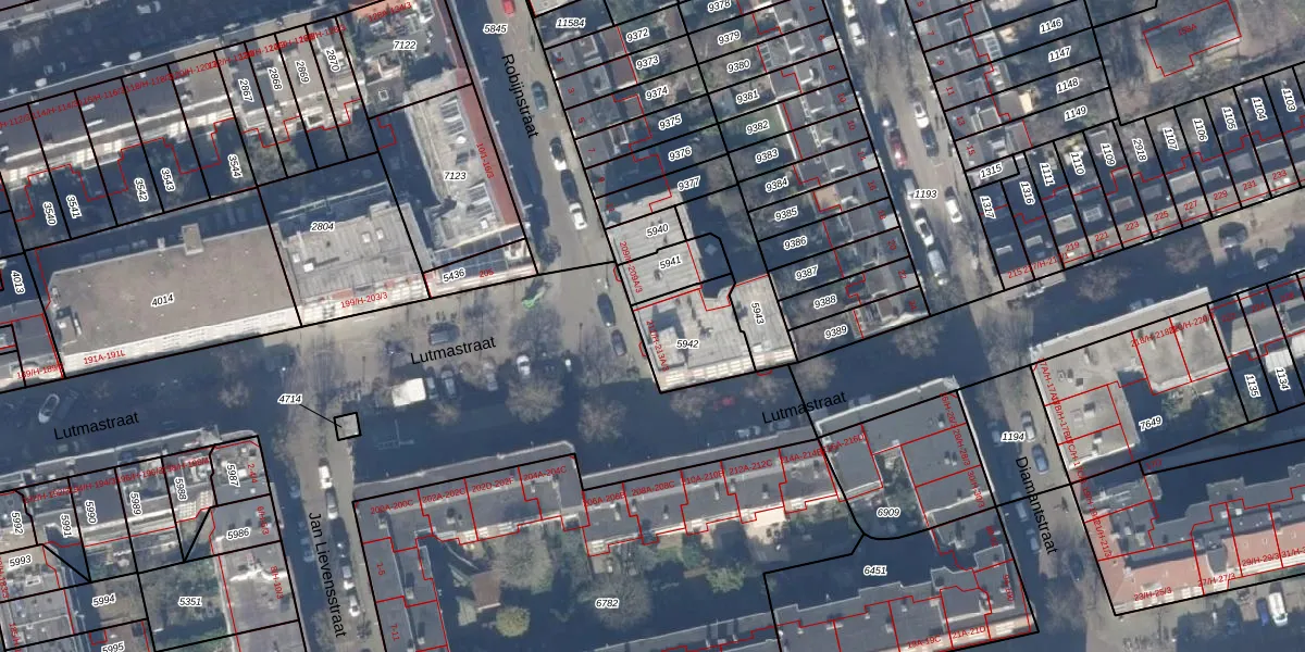 Lutmastraat 211-3 is gelegen op kadastraal perceel ASD18V5942. Deze kadastrale aanduiding is uniek en wordt gebruikt door het Kadaster om eigendomsrechten en andere zakelijke rechten vast te leggen. Het perceel maakt onderdeel uit van de kadastrale gemeente Amsterdam.