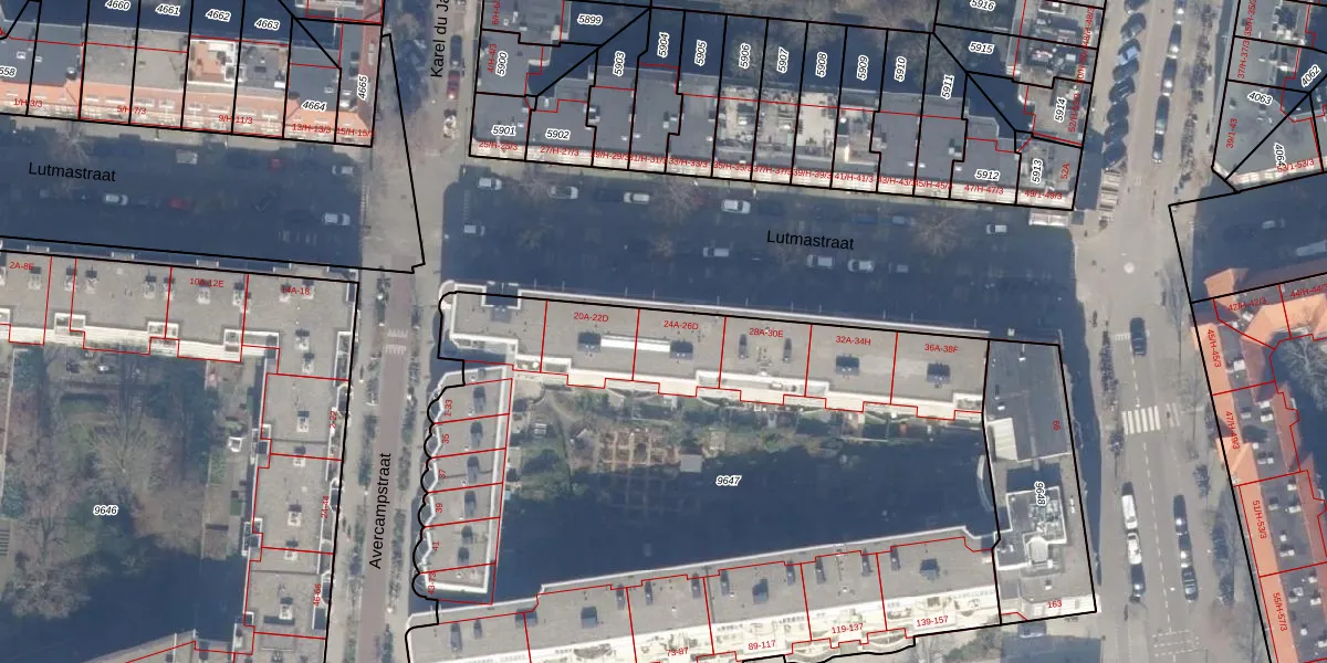 Lutmastraat 24-G is gelegen op kadastraal perceel ASD18V9647. Deze kadastrale aanduiding is uniek en wordt gebruikt door het Kadaster om eigendomsrechten en andere zakelijke rechten vast te leggen. Het perceel maakt onderdeel uit van de kadastrale gemeente Amsterdam.