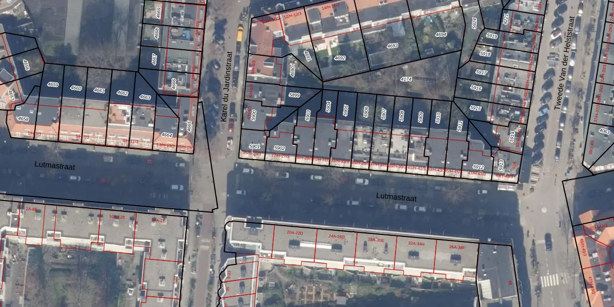 Lutmastraat 29-1 is gelegen op kadastraal perceel ASD18V5903. Deze kadastrale aanduiding is uniek en wordt gebruikt door het Kadaster om eigendomsrechten en andere zakelijke rechten vast te leggen. Het perceel maakt onderdeel uit van de kadastrale gemeente Amsterdam.