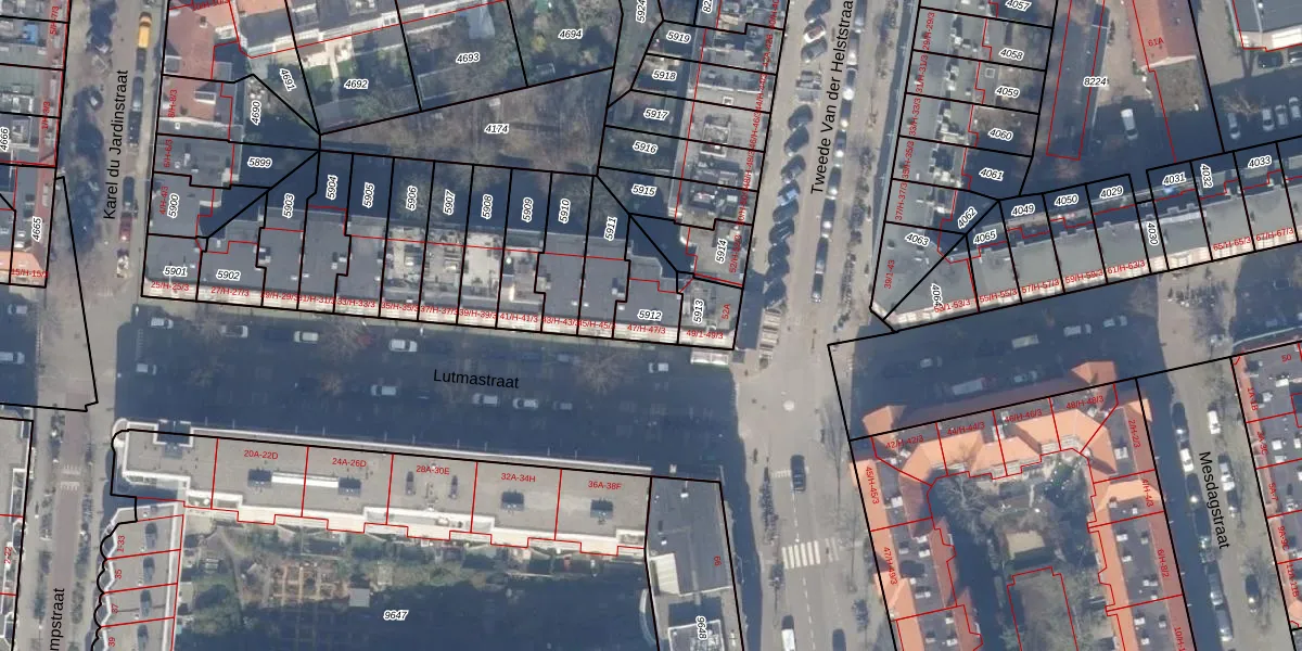 Lutmastraat 47-H is gelegen op kadastraal perceel ASD18V5912. Deze kadastrale aanduiding is uniek en wordt gebruikt door het Kadaster om eigendomsrechten en andere zakelijke rechten vast te leggen. Het perceel maakt onderdeel uit van de kadastrale gemeente Amsterdam.