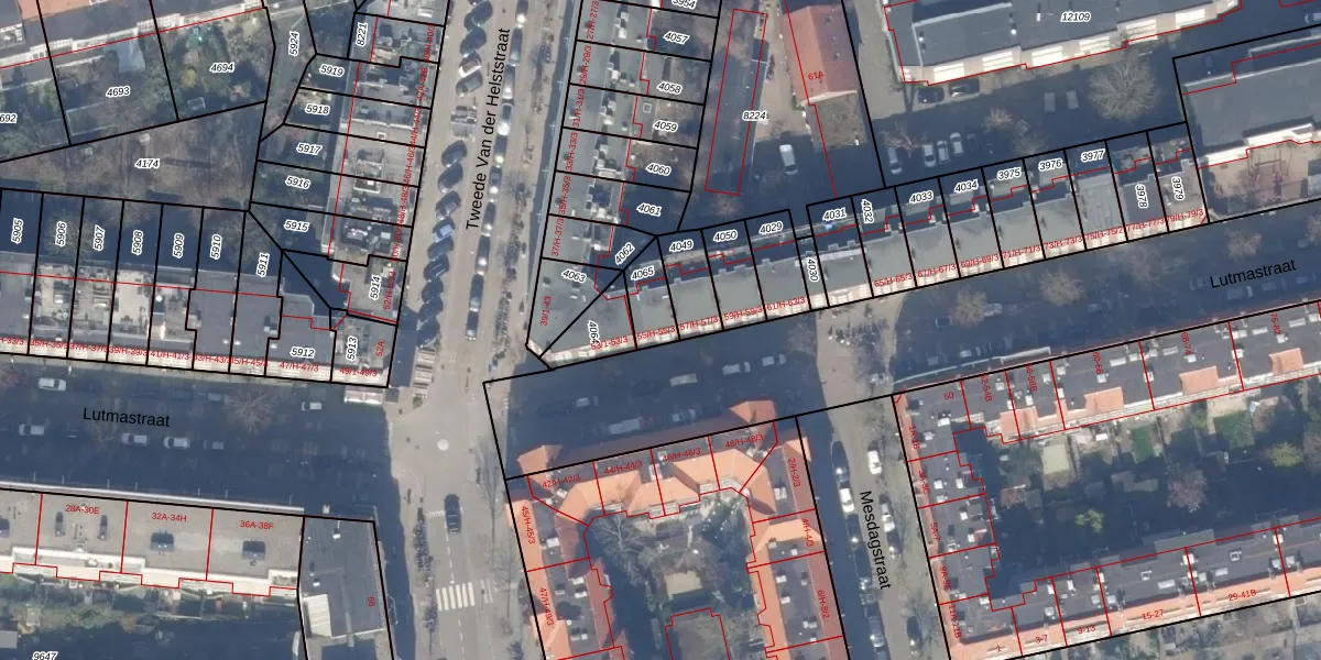 Het perceel waarop Lutmastraat 55-3 staat heeft een oppervlakte van 95 m². Dit is een klein perceel. De perceeloppervlakte wordt geregistreerd door het Kadaster. Gedetailleerde informatie over de maten van dit perceel kunt u vinden in het rapport Kadastrale kaart met maatvoering van Lutmastraat 55-3.
