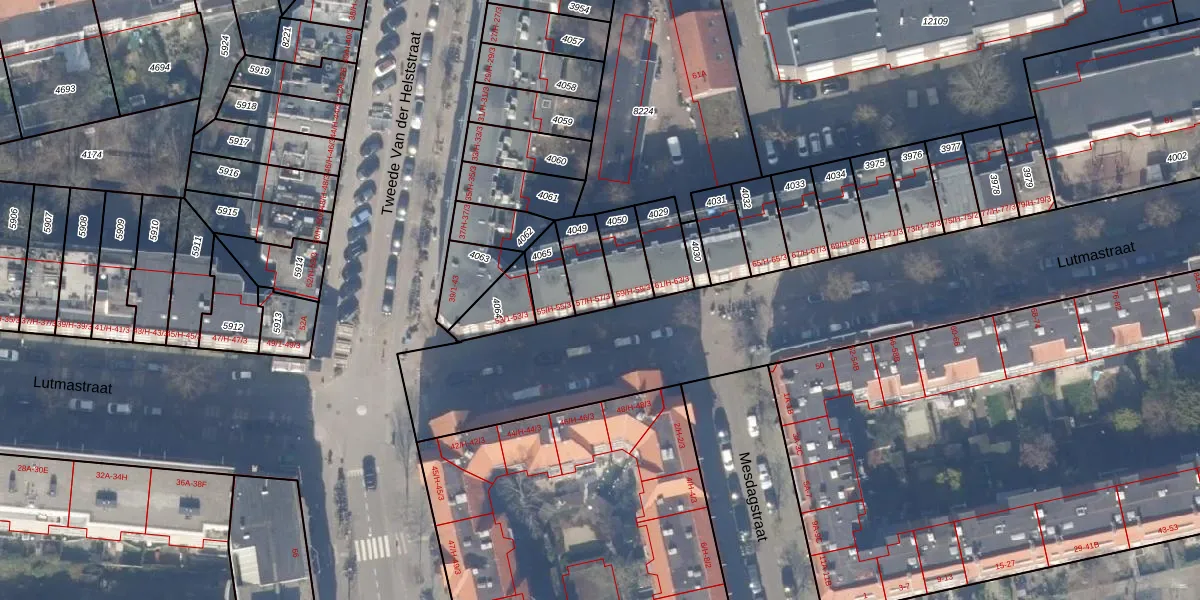 Lutmastraat 57-2 is gelegen op kadastraal perceel ASD18V4049. Deze kadastrale aanduiding is uniek en wordt gebruikt door het Kadaster om eigendomsrechten en andere zakelijke rechten vast te leggen. Het perceel maakt onderdeel uit van de kadastrale gemeente Amsterdam.