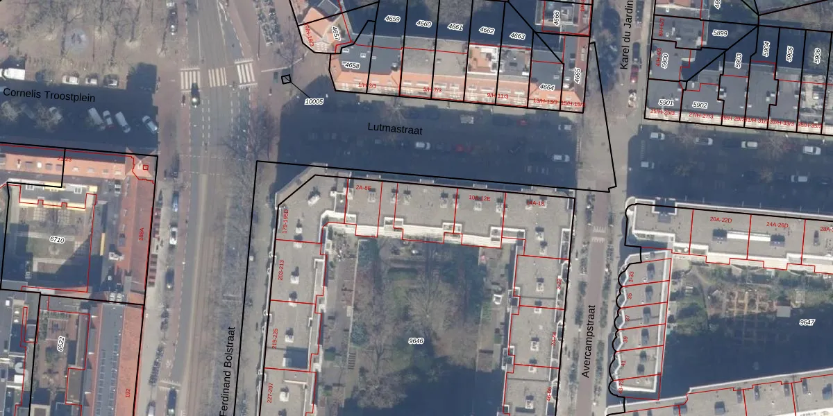 Lutmastraat 6-B is gelegen op kadastraal perceel ASD18V9646. Deze kadastrale aanduiding is uniek en wordt gebruikt door het Kadaster om eigendomsrechten en andere zakelijke rechten vast te leggen. Het perceel maakt onderdeel uit van de kadastrale gemeente Amsterdam.