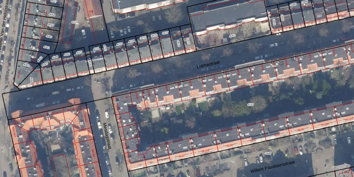 Het perceel waarop Lutmastraat 64-C staat heeft een oppervlakte van 6860 m². Dit is een zeer groot perceel. De perceeloppervlakte wordt geregistreerd door het Kadaster. Gedetailleerde informatie over de maten van dit perceel kunt u vinden in het rapport Kadastrale kaart met maatvoering van Lutmastraat 64-C.