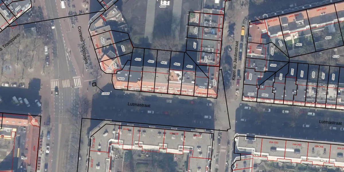 Het perceel waarop Lutmastraat 9-H staat heeft een oppervlakte van 192 m². Dit is een middelgroot perceel. De perceeloppervlakte wordt geregistreerd door het Kadaster. Gedetailleerde informatie over de maten van dit perceel kunt u vinden in het rapport Kadastrale kaart met maatvoering van Lutmastraat 9-H.