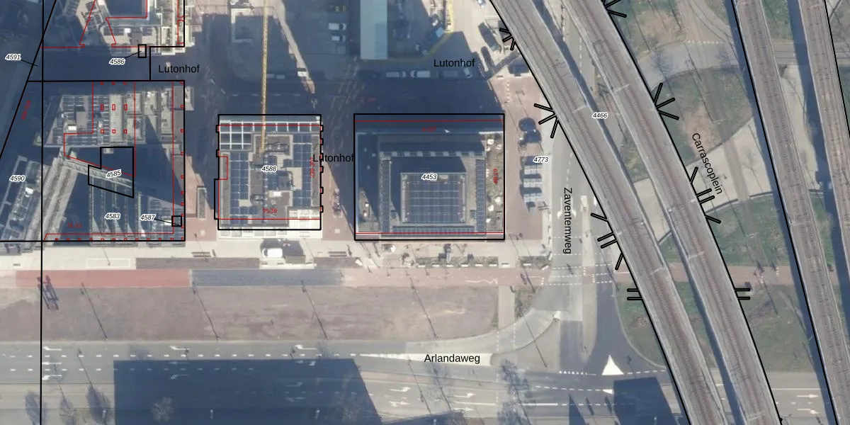 Het perceel waarop Lutonhof 45 staat heeft een oppervlakte van 1040 m². Dit is een zeer groot perceel. De perceeloppervlakte wordt geregistreerd door het Kadaster. Gedetailleerde informatie over de maten van dit perceel kunt u vinden in het rapport Kadastrale kaart met maatvoering van Lutonhof 45.