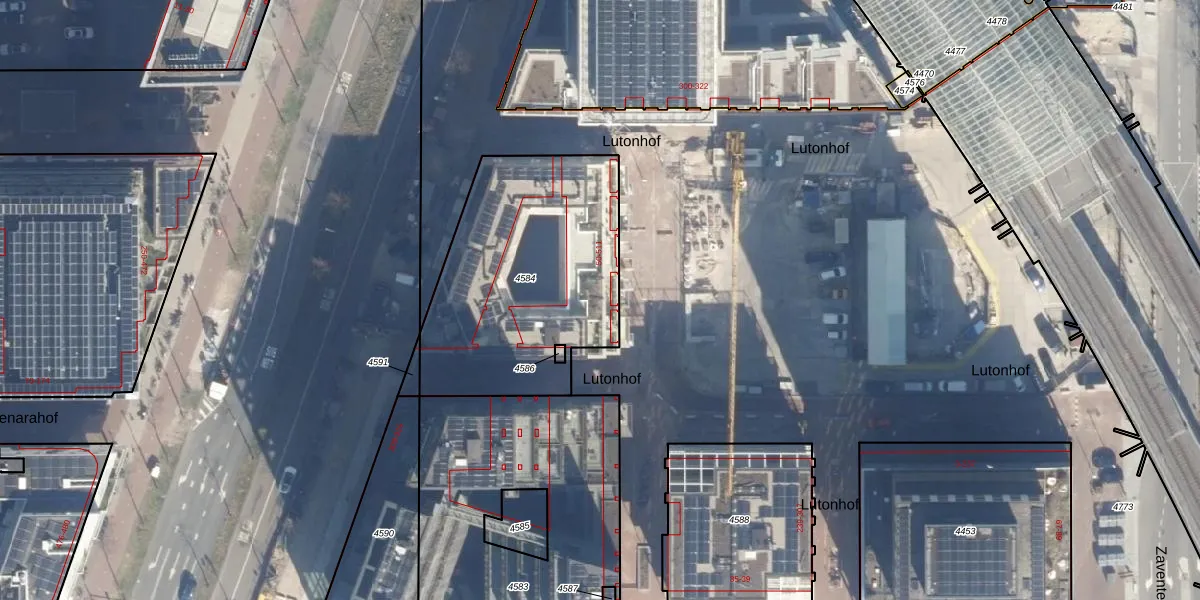 Het perceel waarop Lutonhof 56 staat heeft een oppervlakte van 1106 m². Dit is een zeer groot perceel. De perceeloppervlakte wordt geregistreerd door het Kadaster. Gedetailleerde informatie over de maten van dit perceel kunt u vinden in het rapport Kadastrale kaart met maatvoering van Lutonhof 56.
