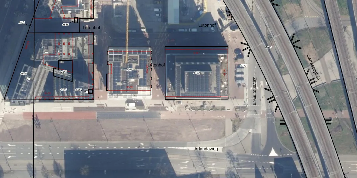Het perceel waarop Lutonhof 63 staat heeft een oppervlakte van 1040 m². Dit is een zeer groot perceel. De perceeloppervlakte wordt geregistreerd door het Kadaster. Gedetailleerde informatie over de maten van dit perceel kunt u vinden in het rapport Kadastrale kaart met maatvoering van Lutonhof 63.
