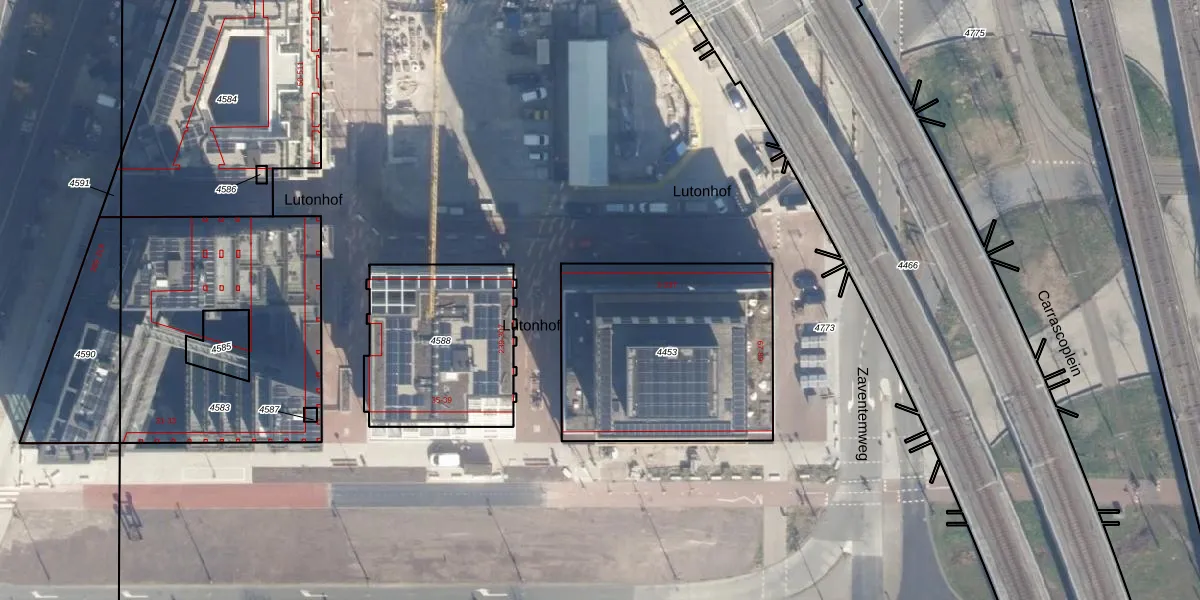 Het perceel waarop Lutonhof 65 staat heeft een oppervlakte van 1040 m². Dit is een zeer groot perceel. De perceeloppervlakte wordt geregistreerd door het Kadaster. Gedetailleerde informatie over de maten van dit perceel kunt u vinden in het rapport Kadastrale kaart met maatvoering van Lutonhof 65.