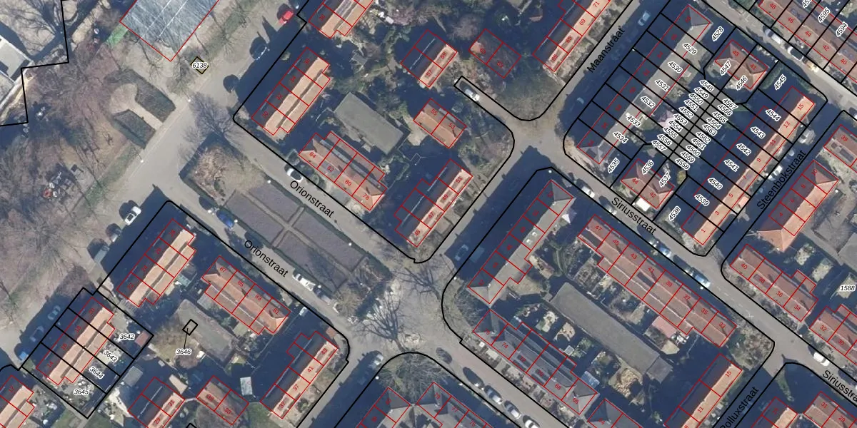 Het perceel waarop Maanstraat 47 staat heeft een oppervlakte van 5317 m². Dit is een zeer groot perceel. De perceeloppervlakte wordt geregistreerd door het Kadaster. Gedetailleerde informatie over de maten van dit perceel kunt u vinden in het rapport Kadastrale kaart met maatvoering van Maanstraat 47.