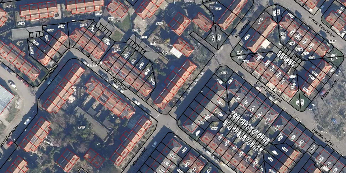 Het perceel waarop Maanstraat 81 staat heeft een oppervlakte van 5427 m². Dit is een zeer groot perceel. De perceeloppervlakte wordt geregistreerd door het Kadaster. Gedetailleerde informatie over de maten van dit perceel kunt u vinden in het rapport Kadastrale kaart met maatvoering van Maanstraat 81.