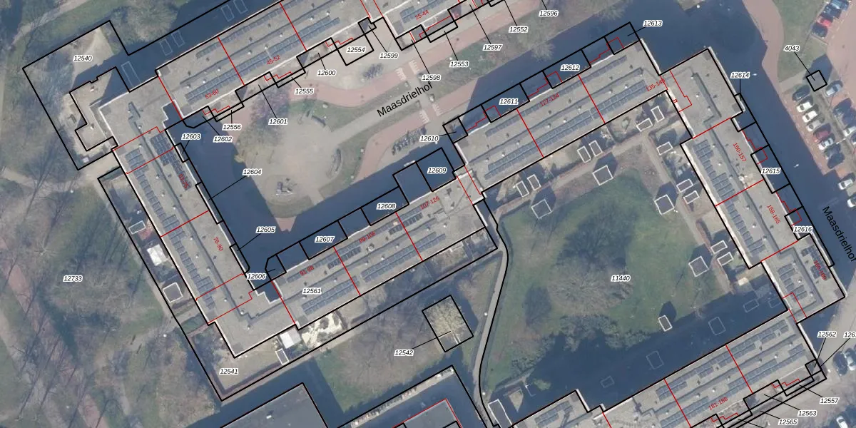 Maasdrielhof 115 is gelegen op kadastraal perceel WPK02L12561. Deze kadastrale aanduiding is uniek en wordt gebruikt door het Kadaster om eigendomsrechten en andere zakelijke rechten vast te leggen. Het perceel maakt onderdeel uit van de kadastrale gemeente Weesperkarspel.
