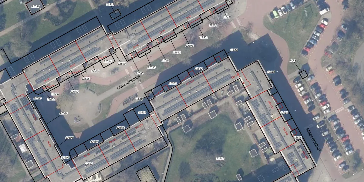 Het perceel waarop Maasdrielhof 127 staat heeft een oppervlakte van 7214 m². Dit is een zeer groot perceel. De perceeloppervlakte wordt geregistreerd door het Kadaster. Gedetailleerde informatie over de maten van dit perceel kunt u vinden in het rapport Kadastrale kaart met maatvoering van Maasdrielhof 127.