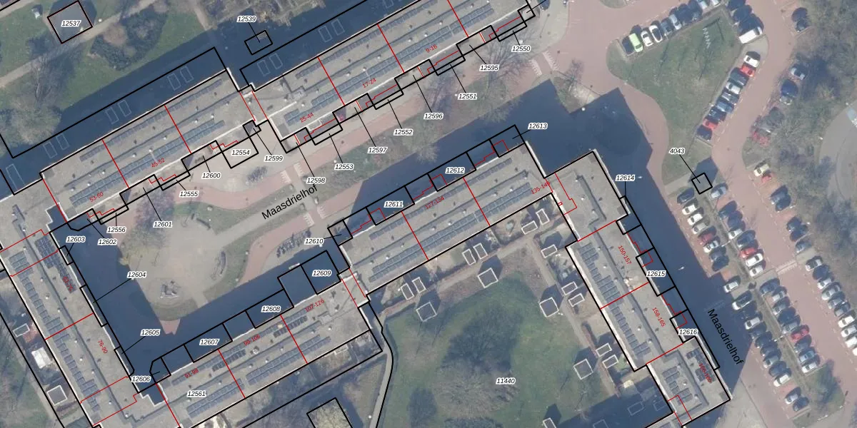 Het perceel waarop Maasdrielhof 129 staat heeft een oppervlakte van 7214 m². Dit is een zeer groot perceel. De perceeloppervlakte wordt geregistreerd door het Kadaster. Gedetailleerde informatie over de maten van dit perceel kunt u vinden in het rapport Kadastrale kaart met maatvoering van Maasdrielhof 129.