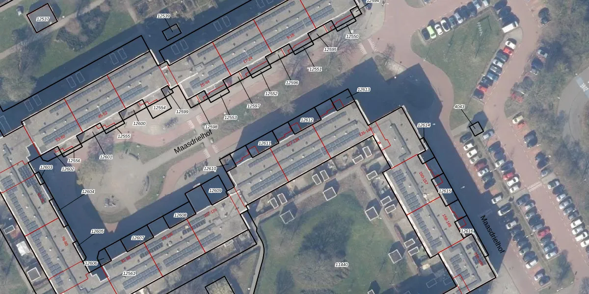 Maasdrielhof 130 is gelegen op kadastraal perceel WPK02L12561. Deze kadastrale aanduiding is uniek en wordt gebruikt door het Kadaster om eigendomsrechten en andere zakelijke rechten vast te leggen. Het perceel maakt onderdeel uit van de kadastrale gemeente Weesperkarspel.