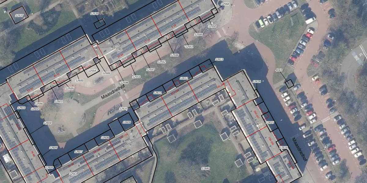 Het perceel waarop Maasdrielhof 133 staat heeft een oppervlakte van 7214 m². Dit is een zeer groot perceel. De perceeloppervlakte wordt geregistreerd door het Kadaster. Gedetailleerde informatie over de maten van dit perceel kunt u vinden in het rapport Kadastrale kaart met maatvoering van Maasdrielhof 133.