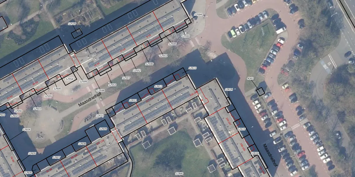 Het perceel waarop Maasdrielhof 140 staat heeft een oppervlakte van 7214 m². Dit is een zeer groot perceel. De perceeloppervlakte wordt geregistreerd door het Kadaster. Gedetailleerde informatie over de maten van dit perceel kunt u vinden in het rapport Kadastrale kaart met maatvoering van Maasdrielhof 140.