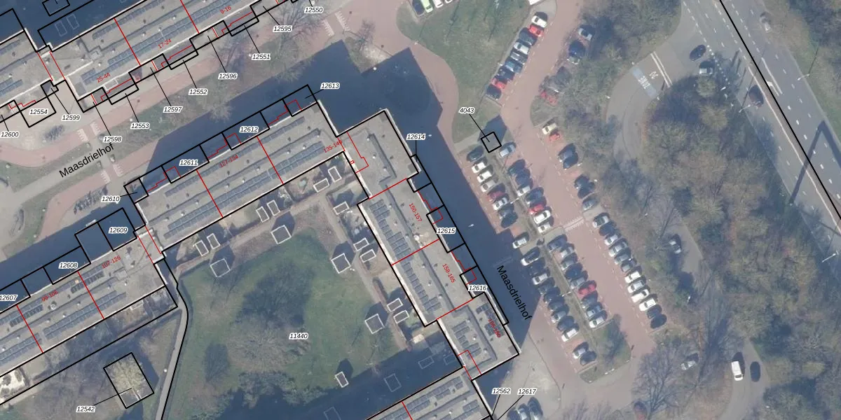 Het perceel waarop Maasdrielhof 152 staat heeft een oppervlakte van 7214 m². Dit is een zeer groot perceel. De perceeloppervlakte wordt geregistreerd door het Kadaster. Gedetailleerde informatie over de maten van dit perceel kunt u vinden in het rapport Kadastrale kaart met maatvoering van Maasdrielhof 152.