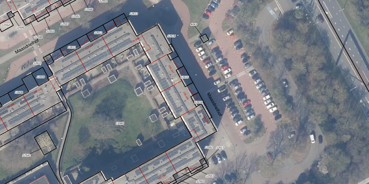 Het perceel waarop Maasdrielhof 160 staat heeft een oppervlakte van 7214 m². Dit is een zeer groot perceel. De perceeloppervlakte wordt geregistreerd door het Kadaster. Gedetailleerde informatie over de maten van dit perceel kunt u vinden in het rapport Kadastrale kaart met maatvoering van Maasdrielhof 160.