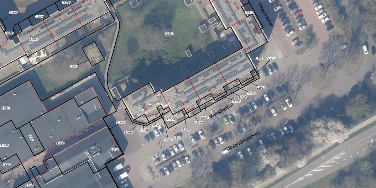 Het perceel waarop Maasdrielhof 192 staat heeft een oppervlakte van 7214 m². Dit is een zeer groot perceel. De perceeloppervlakte wordt geregistreerd door het Kadaster. Gedetailleerde informatie over de maten van dit perceel kunt u vinden in het rapport Kadastrale kaart met maatvoering van Maasdrielhof 192.