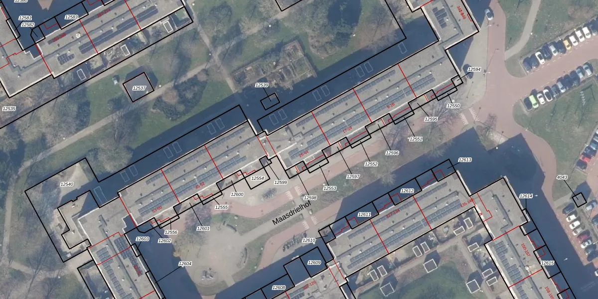 Het perceel waarop Maasdrielhof 34 staat heeft een oppervlakte van 7214 m². Dit is een zeer groot perceel. De perceeloppervlakte wordt geregistreerd door het Kadaster. Gedetailleerde informatie over de maten van dit perceel kunt u vinden in het rapport Kadastrale kaart met maatvoering van Maasdrielhof 34.