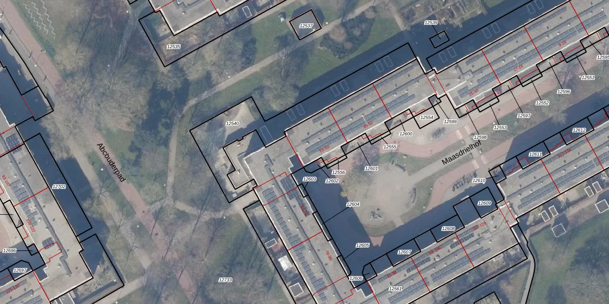 Het perceel waarop Maasdrielhof 58 staat heeft een oppervlakte van 7214 m². Dit is een zeer groot perceel. De perceeloppervlakte wordt geregistreerd door het Kadaster. Gedetailleerde informatie over de maten van dit perceel kunt u vinden in het rapport Kadastrale kaart met maatvoering van Maasdrielhof 58.