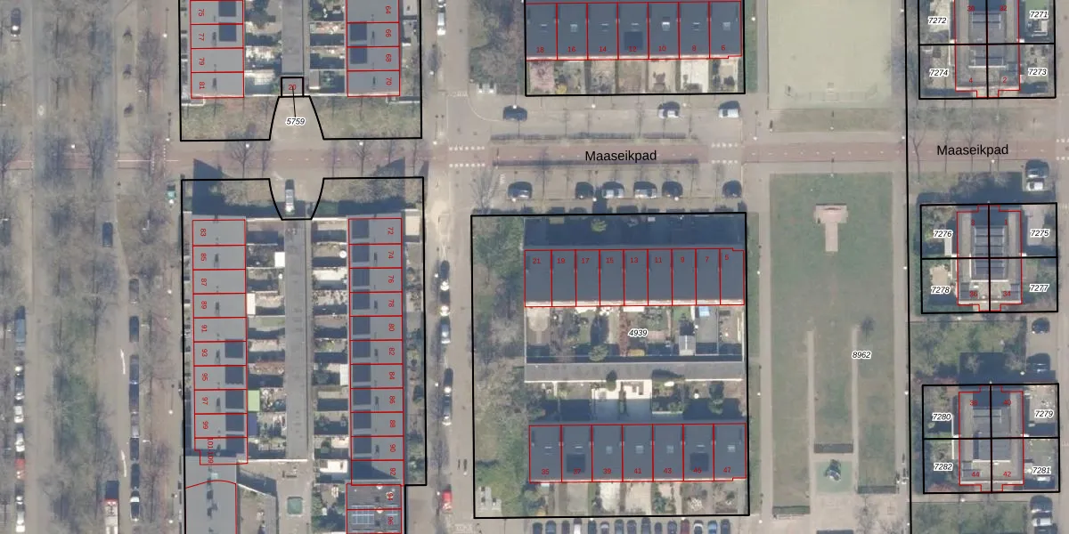 Het perceel waarop Maaseikpad 21 staat heeft een oppervlakte van 2895 m². Dit is een zeer groot perceel. De perceeloppervlakte wordt geregistreerd door het Kadaster. Gedetailleerde informatie over de maten van dit perceel kunt u vinden in het rapport Kadastrale kaart met maatvoering van Maaseikpad 21.