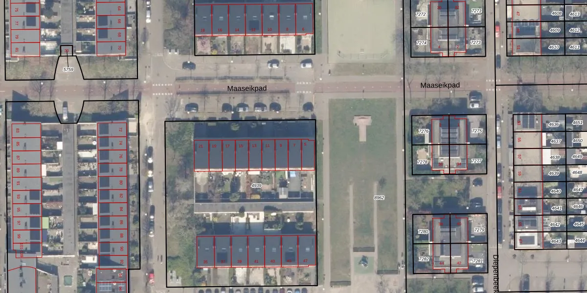 Maaseikpad 7 is gelegen op kadastraal perceel STN02E4939. Deze kadastrale aanduiding is uniek en wordt gebruikt door het Kadaster om eigendomsrechten en andere zakelijke rechten vast te leggen. Het perceel maakt onderdeel uit van de kadastrale gemeente Sloten Noord-Holland.