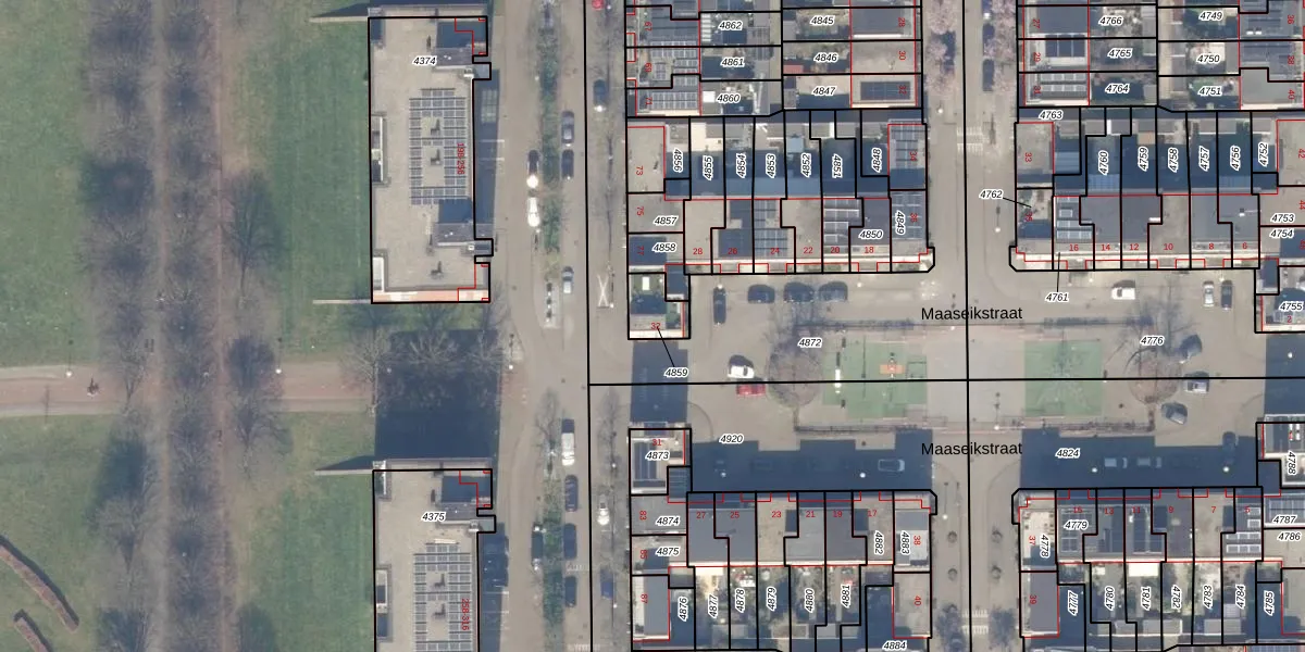 Maaseikstraat 30 is gelegen op kadastraal perceel STN02E4859. Deze kadastrale aanduiding is uniek en wordt gebruikt door het Kadaster om eigendomsrechten en andere zakelijke rechten vast te leggen. Het perceel maakt onderdeel uit van de kadastrale gemeente Sloten Noord-Holland.