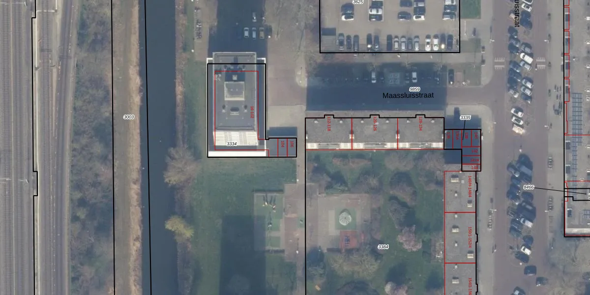Maassluisstraat 106 is gelegen op kadastraal perceel STN02E3334. Deze kadastrale aanduiding is uniek en wordt gebruikt door het Kadaster om eigendomsrechten en andere zakelijke rechten vast te leggen. Het perceel maakt onderdeel uit van de kadastrale gemeente Sloten Noord-Holland.