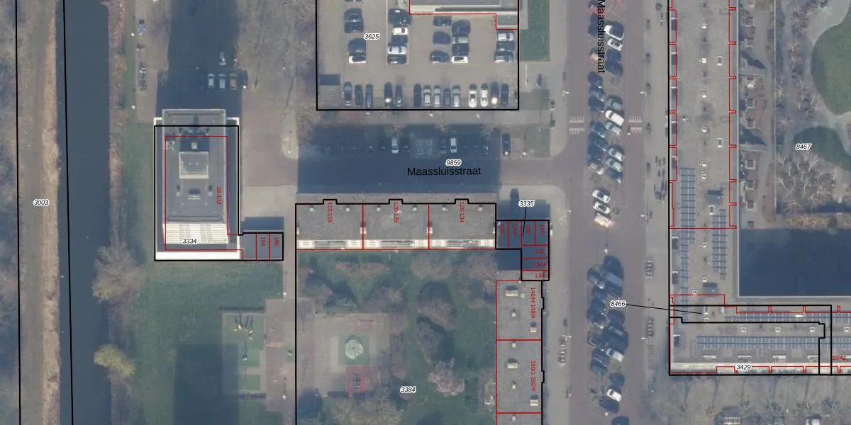Het perceel waarop Maassluisstraat 126 staat heeft een oppervlakte van 4683 m². Dit is een zeer groot perceel. De perceeloppervlakte wordt geregistreerd door het Kadaster. Gedetailleerde informatie over de maten van dit perceel kunt u vinden in het rapport Kadastrale kaart met maatvoering van Maassluisstraat 126.