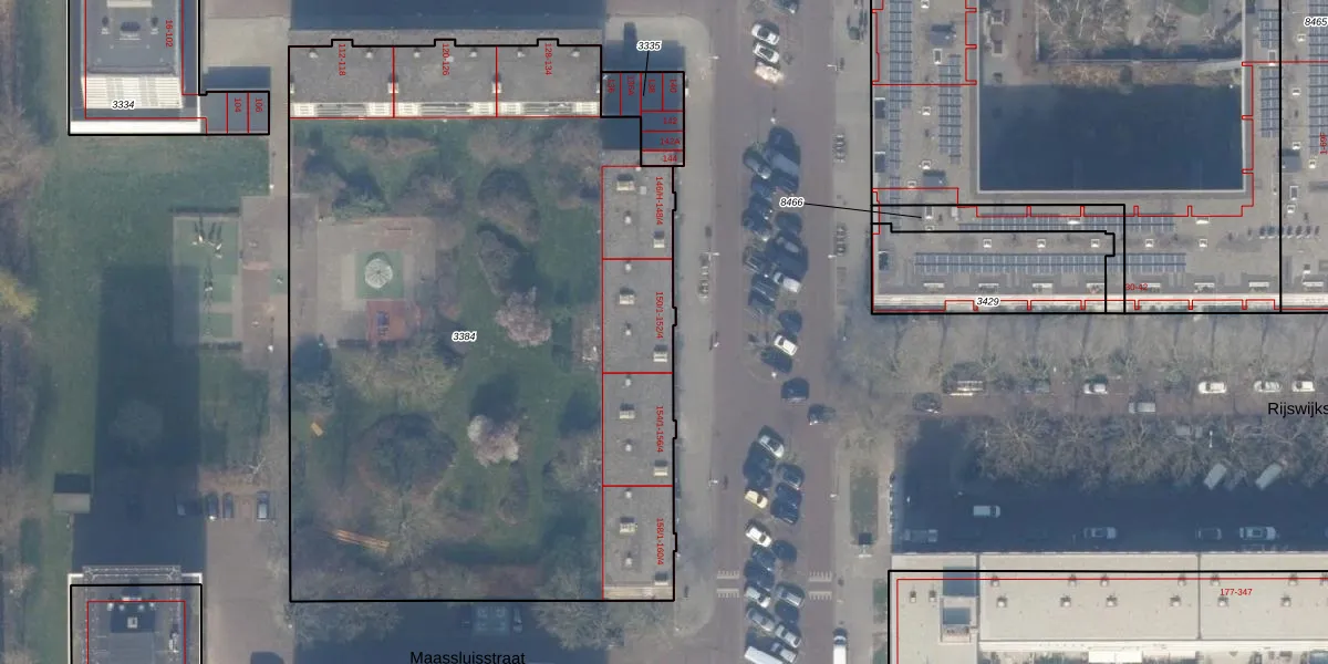 Maassluisstraat 152-3 is gelegen op kadastraal perceel STN02E3384. Deze kadastrale aanduiding is uniek en wordt gebruikt door het Kadaster om eigendomsrechten en andere zakelijke rechten vast te leggen. Het perceel maakt onderdeel uit van de kadastrale gemeente Sloten Noord-Holland.