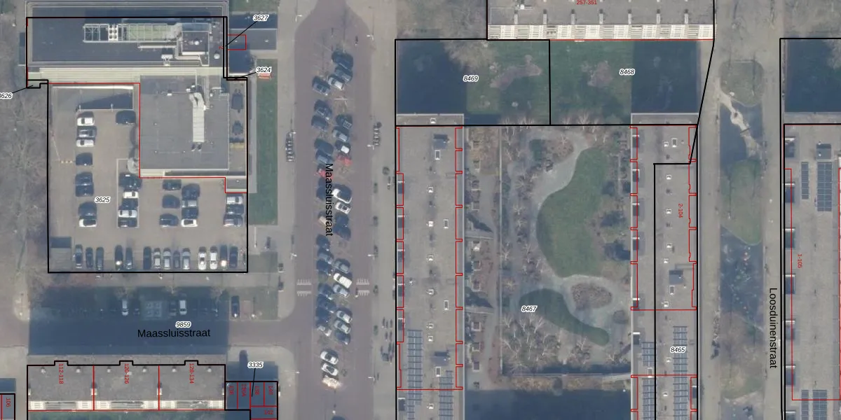 Het perceel waarop Maassluisstraat 19 staat heeft een oppervlakte van 5457 m². Dit is een zeer groot perceel. De perceeloppervlakte wordt geregistreerd door het Kadaster. Gedetailleerde informatie over de maten van dit perceel kunt u vinden in het rapport Kadastrale kaart met maatvoering van Maassluisstraat 19.