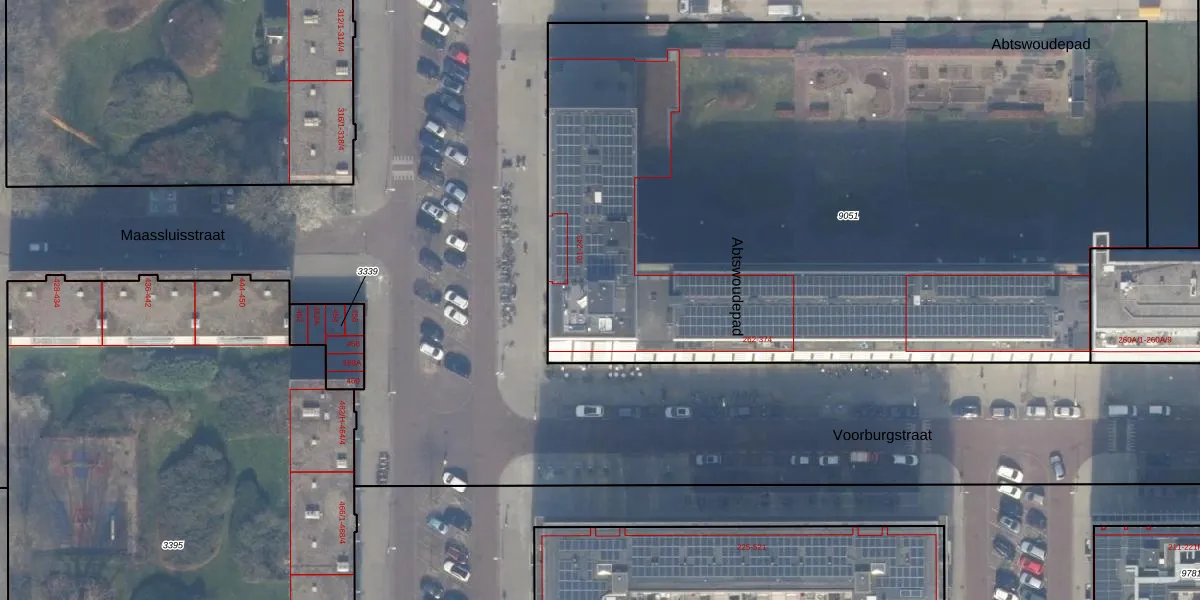 Het perceel waarop Maassluisstraat 233 staat heeft een oppervlakte van 5490 m². Dit is een zeer groot perceel. De perceeloppervlakte wordt geregistreerd door het Kadaster. Gedetailleerde informatie over de maten van dit perceel kunt u vinden in het rapport Kadastrale kaart met maatvoering van Maassluisstraat 233.