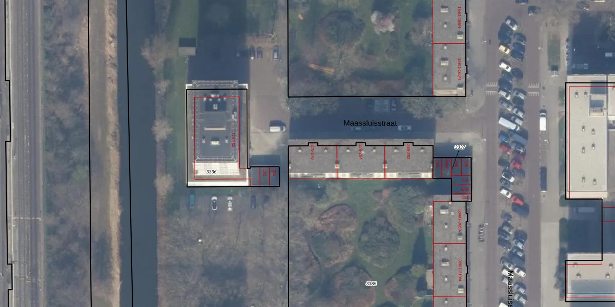 Het perceel waarop Maassluisstraat 272-2 staat heeft een oppervlakte van 4684 m². Dit is een zeer groot perceel. De perceeloppervlakte wordt geregistreerd door het Kadaster. Gedetailleerde informatie over de maten van dit perceel kunt u vinden in het rapport Kadastrale kaart met maatvoering van Maassluisstraat 272-2.