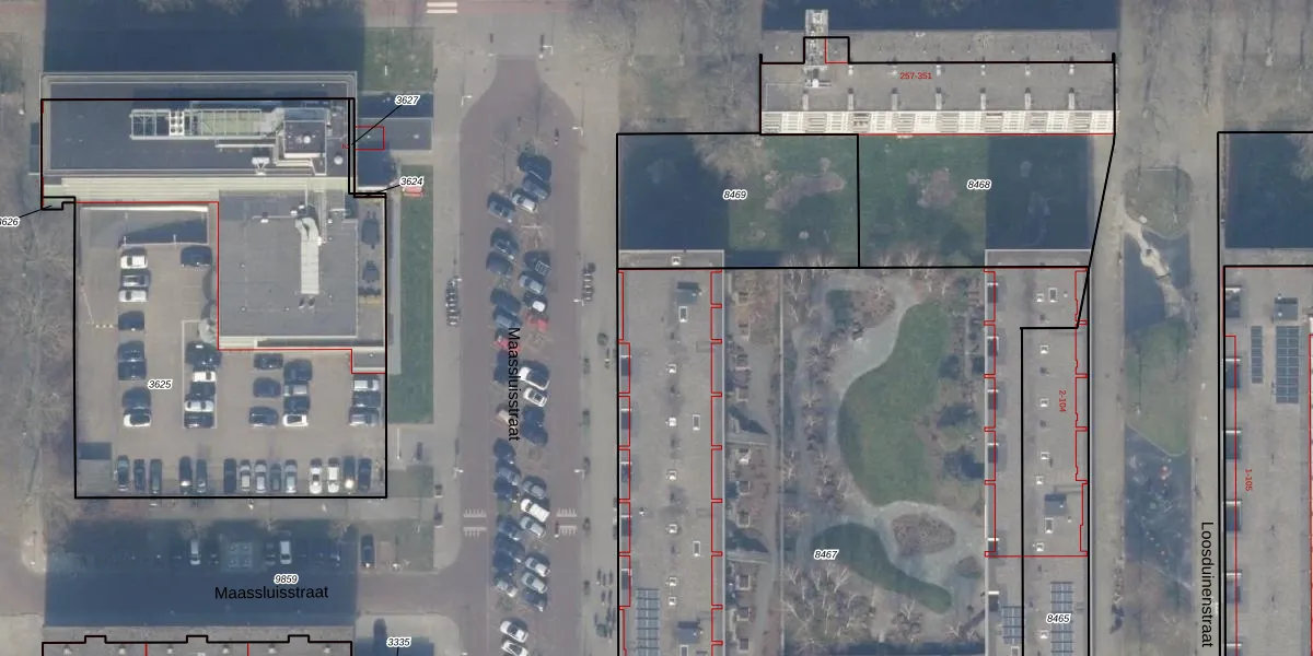 Het perceel waarop Maassluisstraat 3 staat heeft een oppervlakte van 5457 m². Dit is een zeer groot perceel. De perceeloppervlakte wordt geregistreerd door het Kadaster. Gedetailleerde informatie over de maten van dit perceel kunt u vinden in het rapport Kadastrale kaart met maatvoering van Maassluisstraat 3.