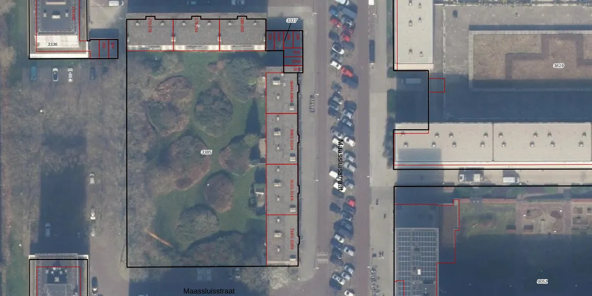 Het perceel waarop Maassluisstraat 310-H staat heeft een oppervlakte van 4684 m². Dit is een zeer groot perceel. De perceeloppervlakte wordt geregistreerd door het Kadaster. Gedetailleerde informatie over de maten van dit perceel kunt u vinden in het rapport Kadastrale kaart met maatvoering van Maassluisstraat 310-H.