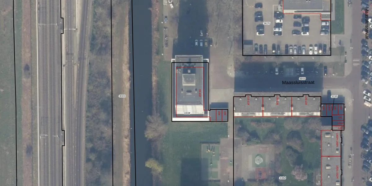 Maassluisstraat 38 is gelegen op kadastraal perceel STN02E3334. Deze kadastrale aanduiding is uniek en wordt gebruikt door het Kadaster om eigendomsrechten en andere zakelijke rechten vast te leggen. Het perceel maakt onderdeel uit van de kadastrale gemeente Sloten Noord-Holland.