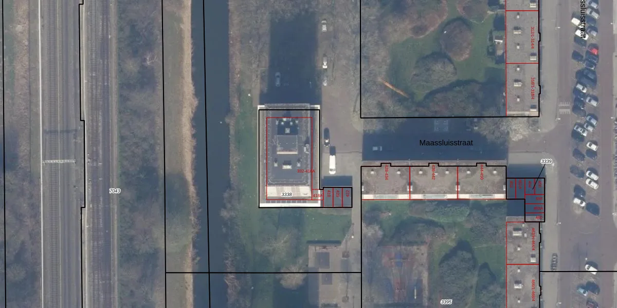 Maassluisstraat 406 is gelegen op kadastraal perceel STN02E3338. Deze kadastrale aanduiding is uniek en wordt gebruikt door het Kadaster om eigendomsrechten en andere zakelijke rechten vast te leggen. Het perceel maakt onderdeel uit van de kadastrale gemeente Sloten Noord-Holland.