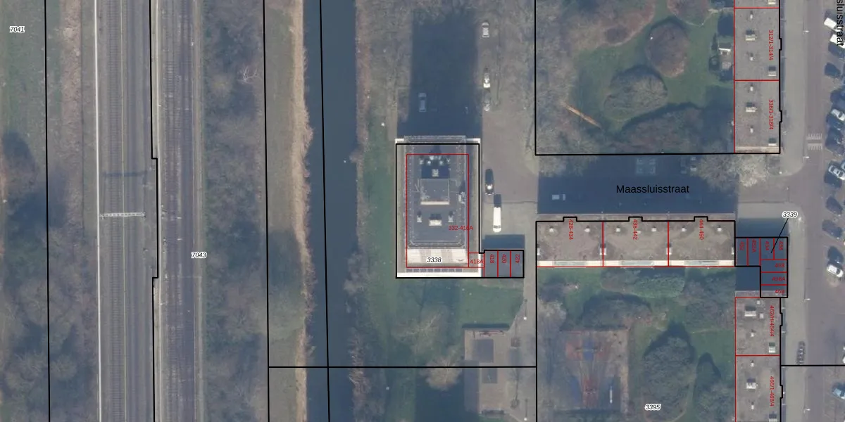 Maassluisstraat 416-P is gelegen op kadastraal perceel STN02E3338. Deze kadastrale aanduiding is uniek en wordt gebruikt door het Kadaster om eigendomsrechten en andere zakelijke rechten vast te leggen. Het perceel maakt onderdeel uit van de kadastrale gemeente Sloten Noord-Holland.