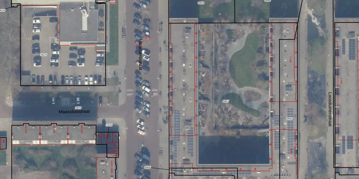 Het perceel waarop Maassluisstraat 45 staat heeft een oppervlakte van 5457 m². Dit is een zeer groot perceel. De perceeloppervlakte wordt geregistreerd door het Kadaster. Gedetailleerde informatie over de maten van dit perceel kunt u vinden in het rapport Kadastrale kaart met maatvoering van Maassluisstraat 45.